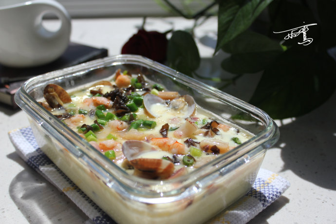 3、鸡蛋搅成糊,加水,加盐,蒸熟;